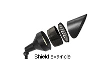 “Shielding” means a barrier around or within a fixture that helps conceal the lamp and control light distribution. A fixture that is “fully shielded” incorporates a solid barrier, emits no light rays above the horizontal plane and effectively obscures visibility of the lamp. A fixture that is “partially shielded” may allow some light to pass through a semi-translucent barrier, and/or may allow visibility of the lamp from certain perspectives.